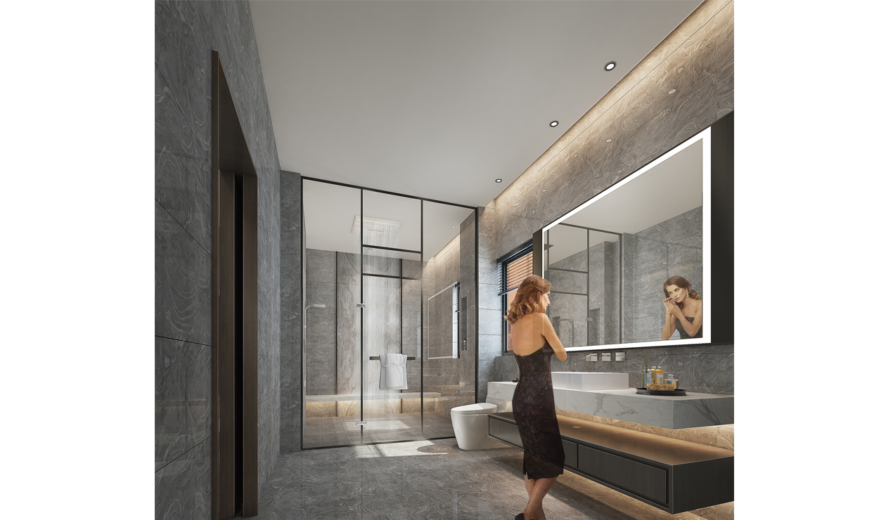 本案例注重细腻质感,空间强调美学的艺术触觉,以现代的审美利用不同材质的纹理丰富视觉。整体采用对称的构图方式,稳重治静。