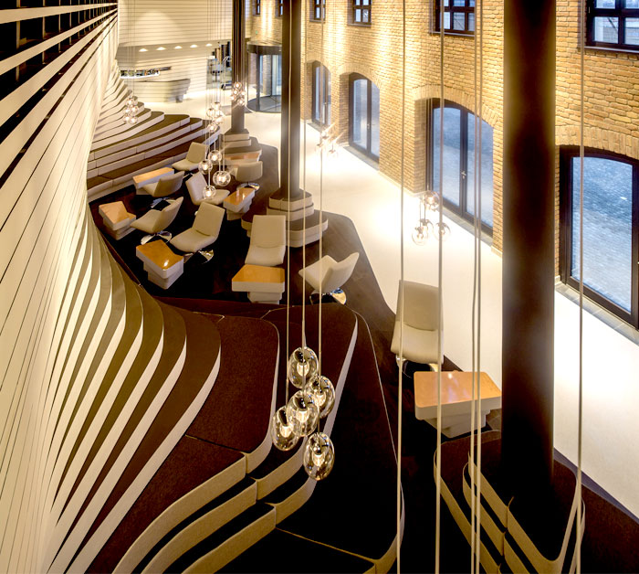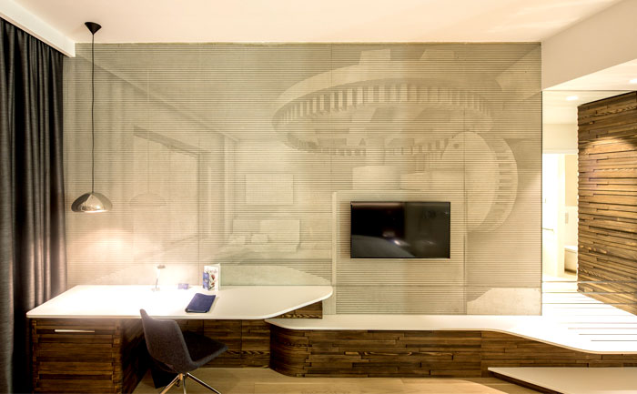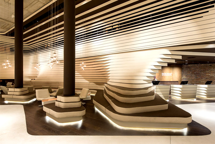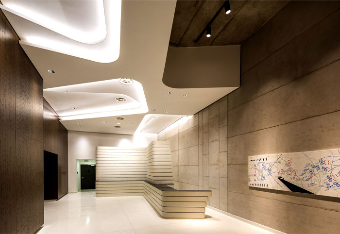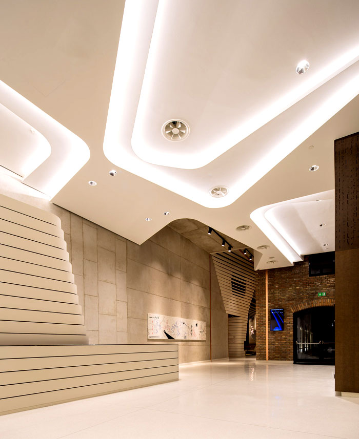取有形的建筑之美,营造无形之美的生活意境。引用自然山水元素,奖东方美学,带到现代理性当中。接待厅设计师利用光结构阴影对空间内部进行重新诠释,使得在空间上对光线产生多重可能性。