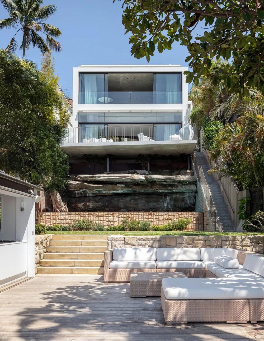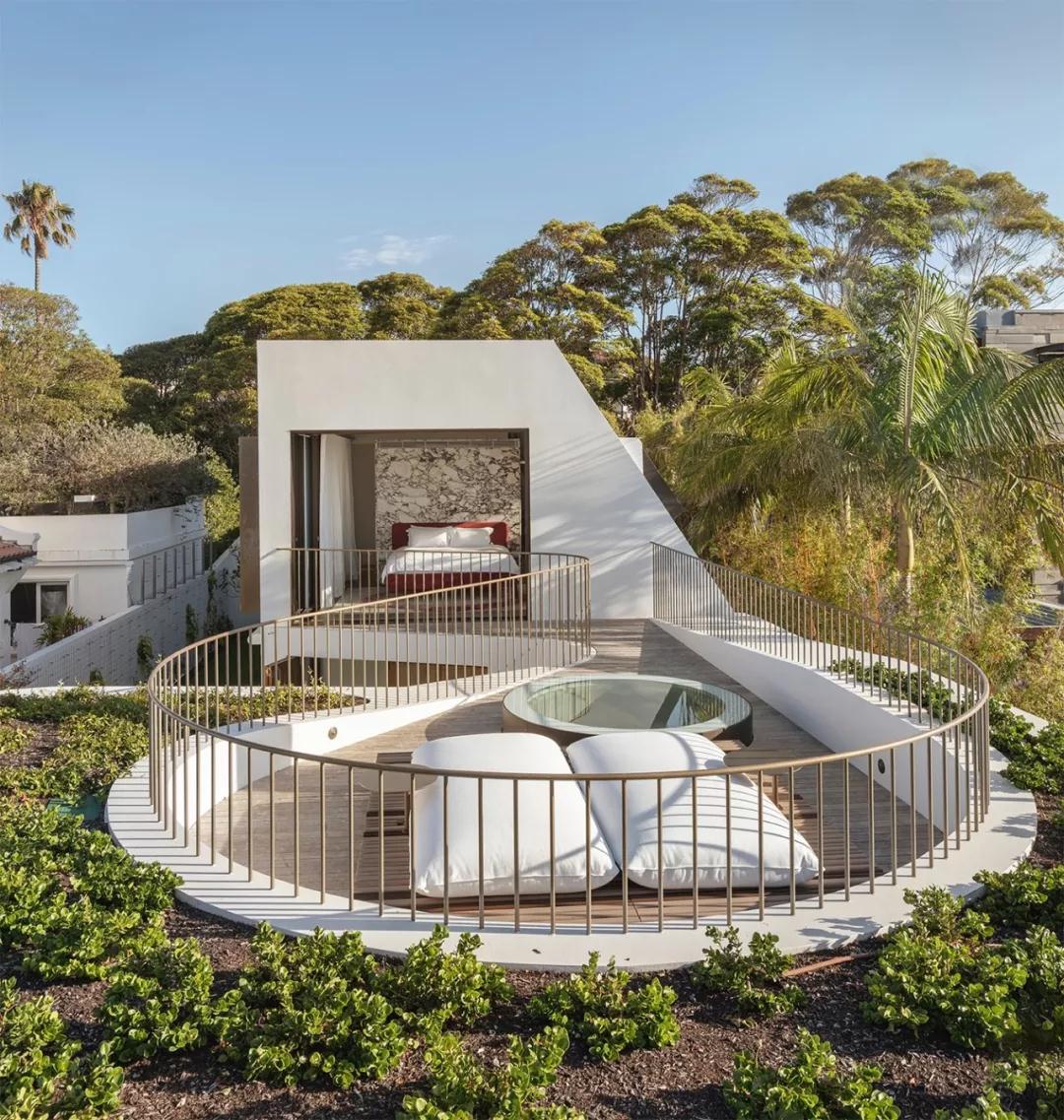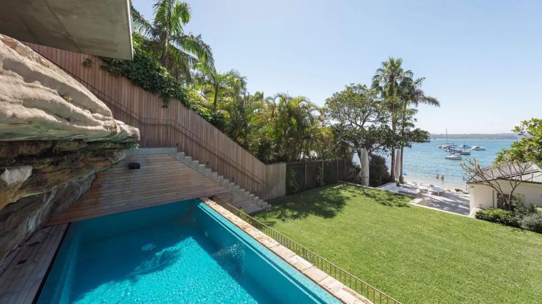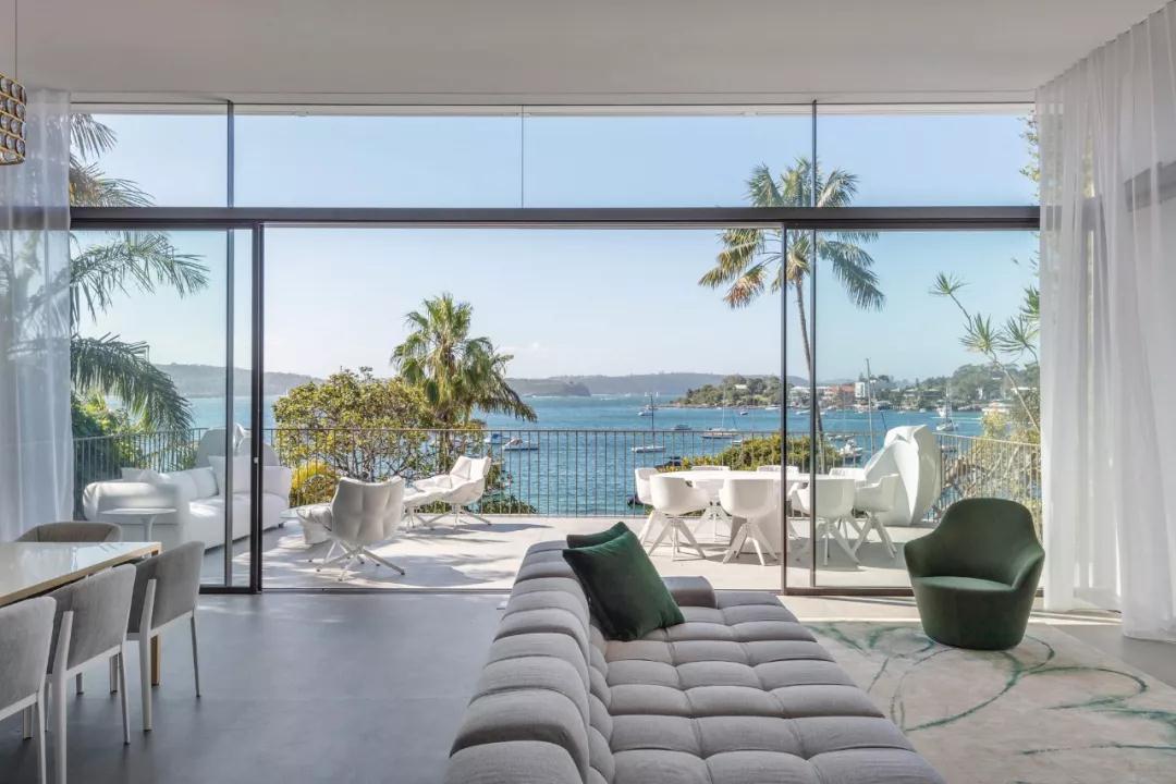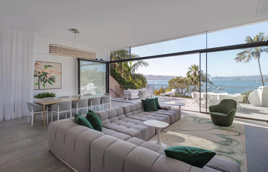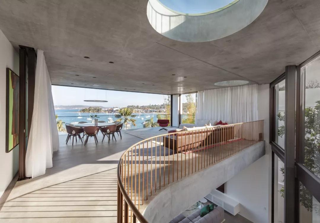 别墅可以俯瞰悉尼港,将海滨美景尽收眼底,面积439平方米,建筑师融合了当代建筑和设计,同时也突出了环境的元素,让建筑与自然完美融合。