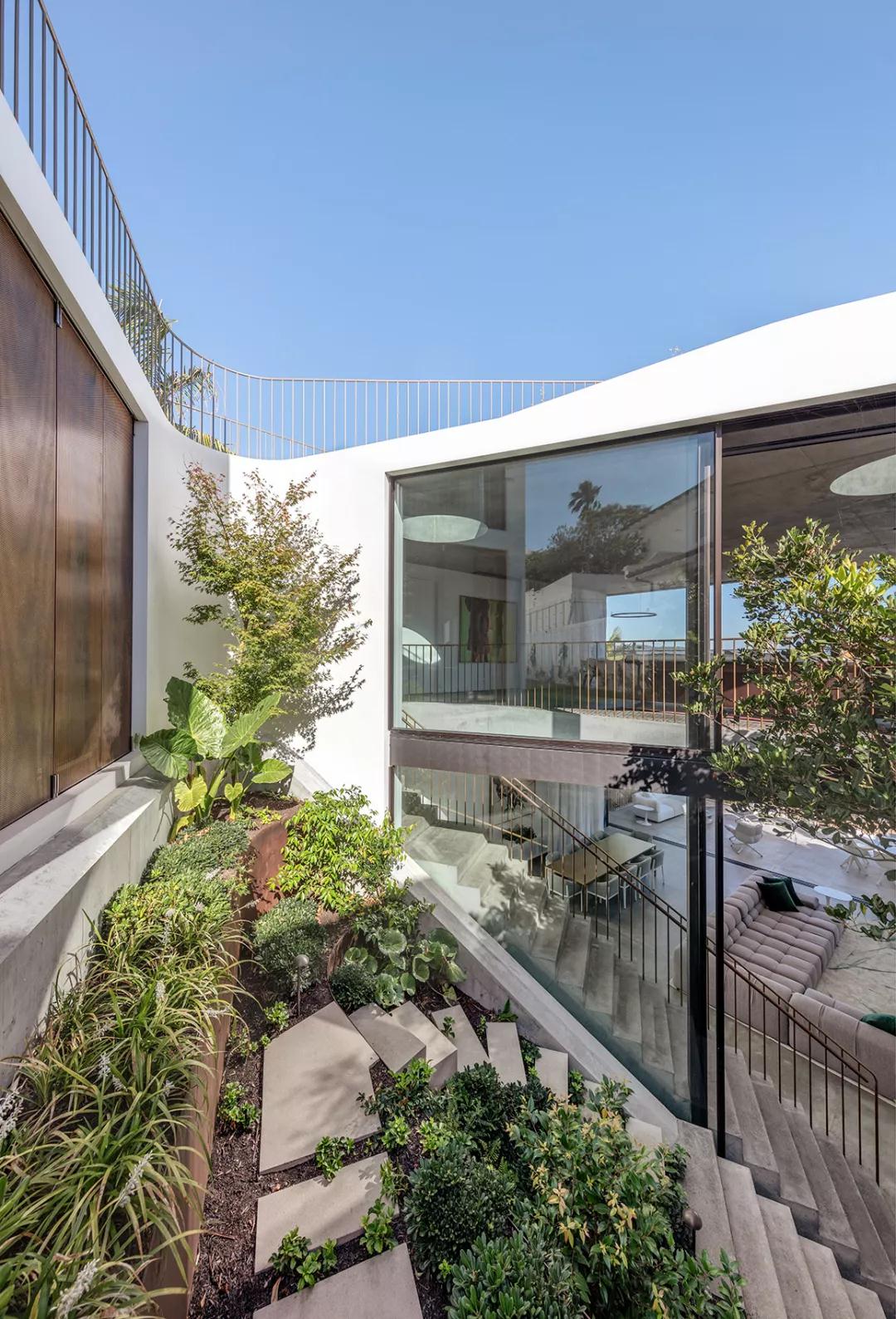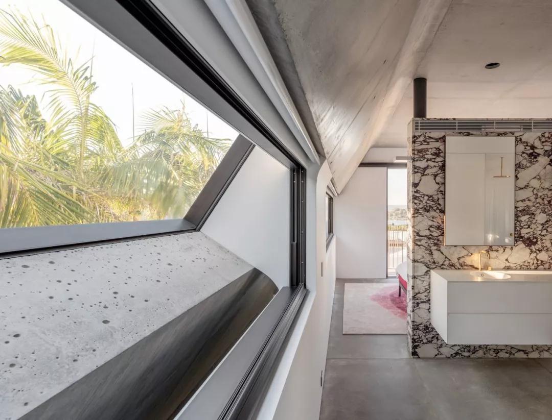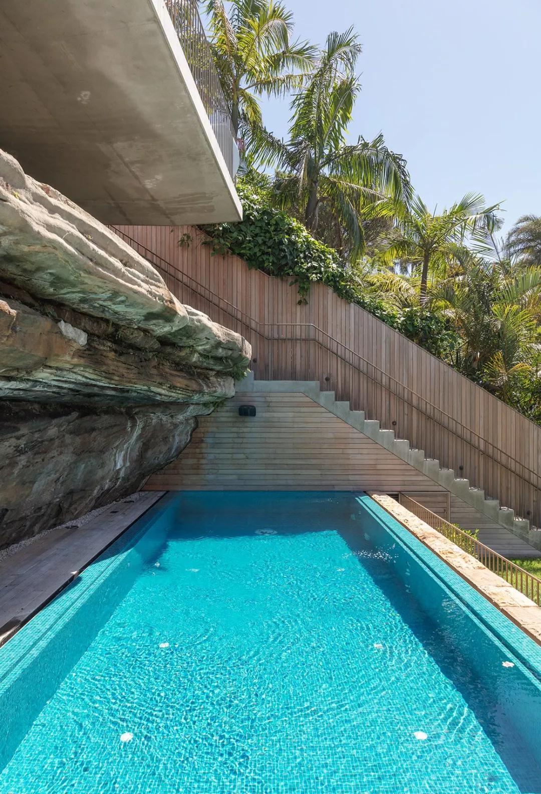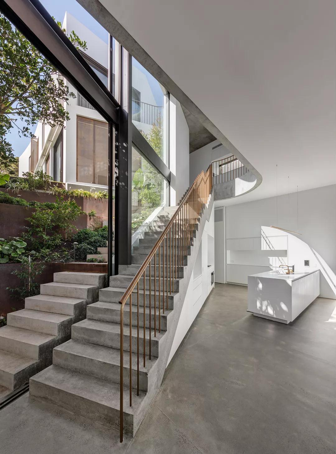 别墅可以俯瞰悉尼港,将海滨美景尽收眼底,面积439平方米,建筑师融合了当代建筑和设计,同时也突出了环境的元素,让建筑与自然完美融合。