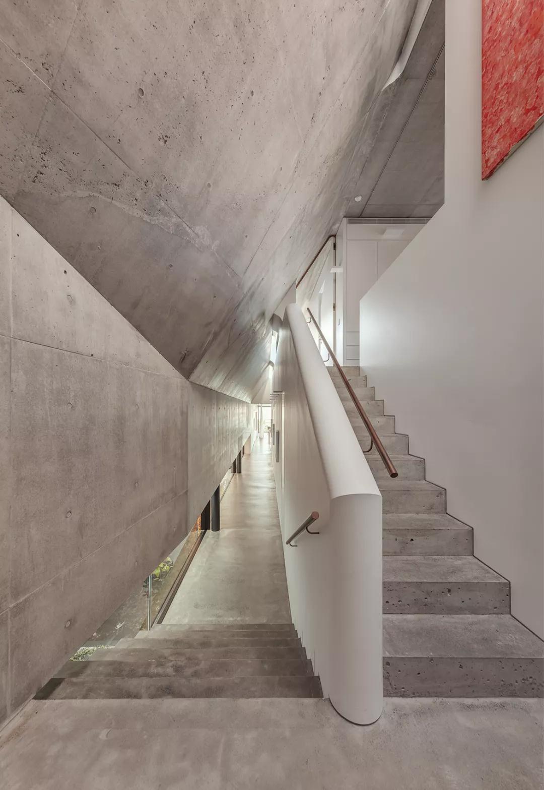 安藤忠雄喜欢使用清水混凝土作为建筑材料,他认为混凝土是一种具有生命力的材质,Matthew Woodward建造这栋住宅也是深受其启发,利用混凝土打造了这栋极简风格别墅。
